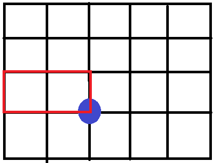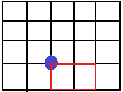 - 물고기 있는 곳에서 그물을 친다고 가정했을때, 그 물고기가 그물에 끝점에 걸려있는 경우까지 다 봐주면 된다.즉, 아래의 그림과 같이, 그물을 움직여주면 된다! 그물의 시작점을 옮겨준다고 생각하면 편하다.(내가 시작한 물고기를 가장자리에 걸치게 하기 위해서)