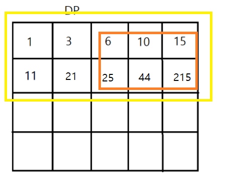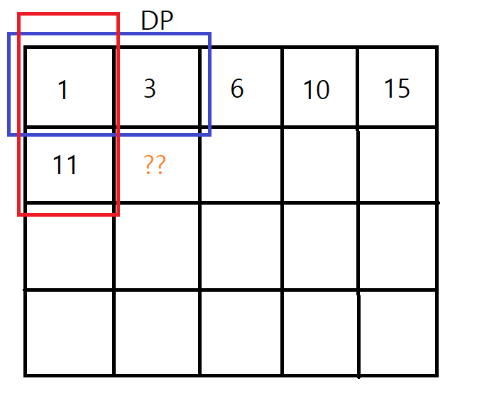 즉, DP[2][2] = arr[1][1] +arr[1][2] +arr[2][1] +arr[2][2].