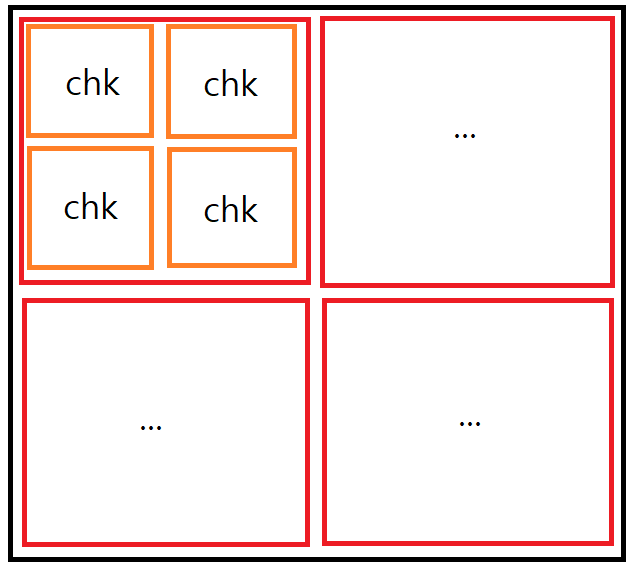 아래 그림과 같이, 왼쪽위, 오른쪽 위, 왼쪽아래, 오른쪽 아래 순서대로 check를 진행한다. 만약, 안의 구성이 "1" 이나 "0"으로만 이루어져 있으면, 그걸 출력하면 된다.