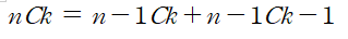 - N명 중 K명중 하나를 뽑는다는건, 1명을 기준으로 그 사람을 제외하고 나머지를 뽑는 경우의 수와 , 그 사람을 포함시켜서 나머지를 뽑는 경우의 합으로 나타낼 수 있다.