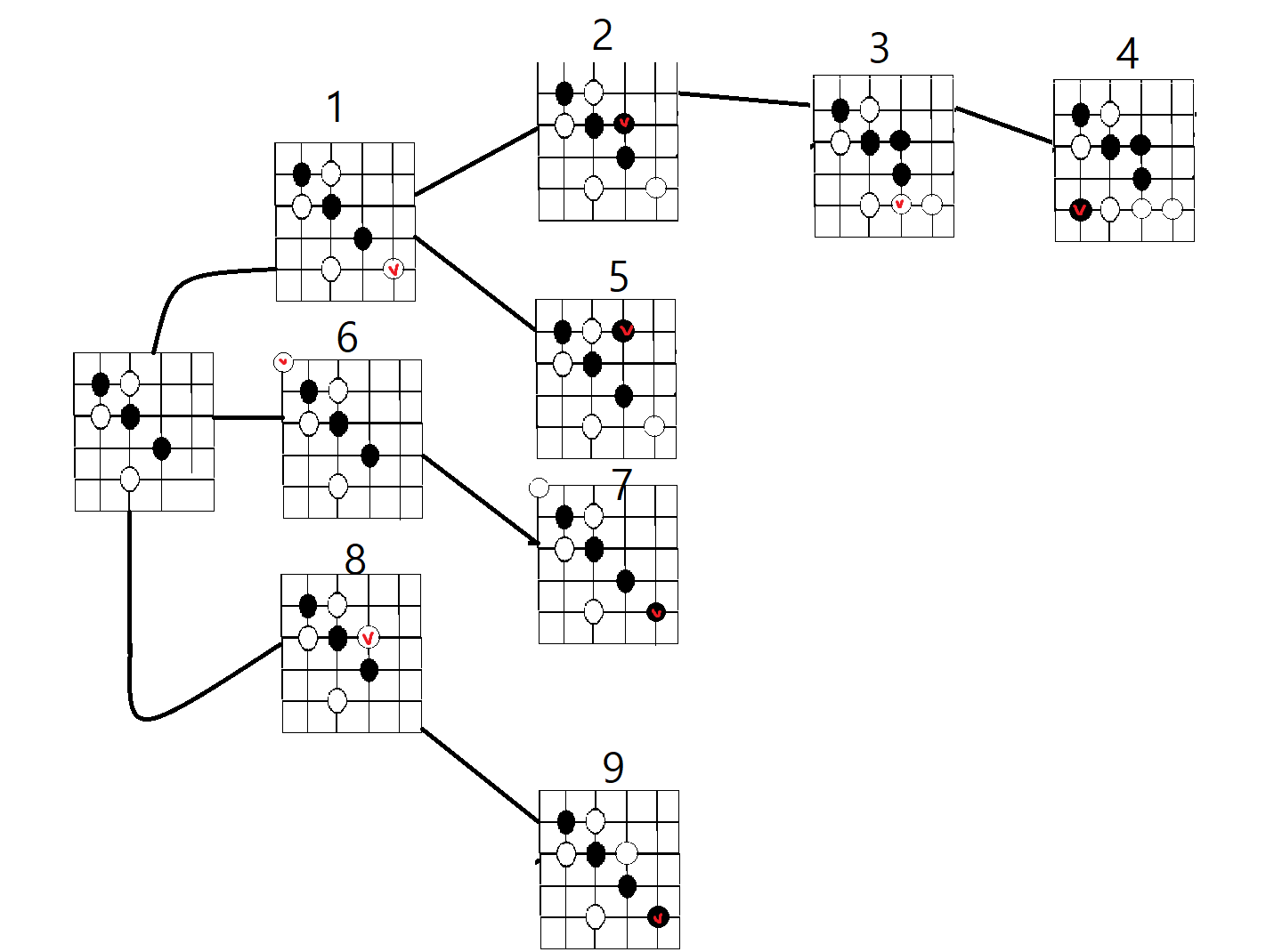 오목으로 생각하면, 내가 놓고, 상대방이 놓고, 그 뒤 상황을 생각하는 방법.