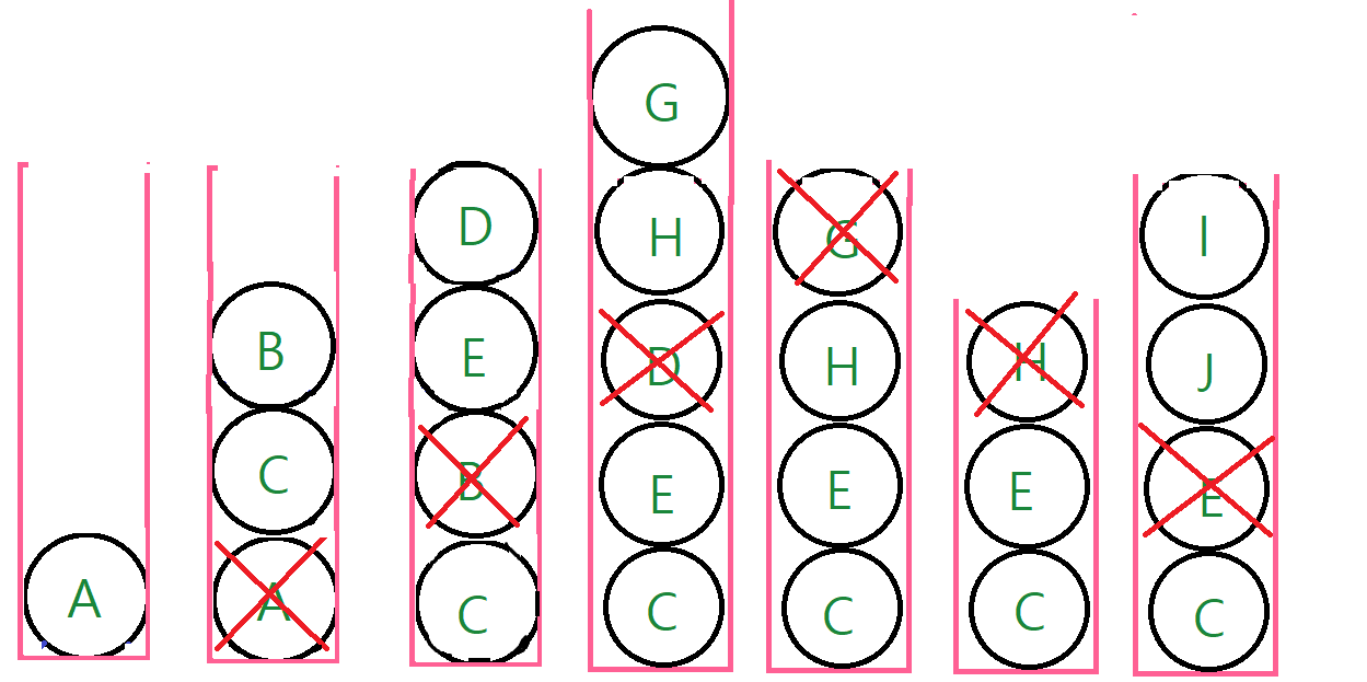 순서 : A ->B -> D-> G -> H ->E -> I -> J ->C->F->K