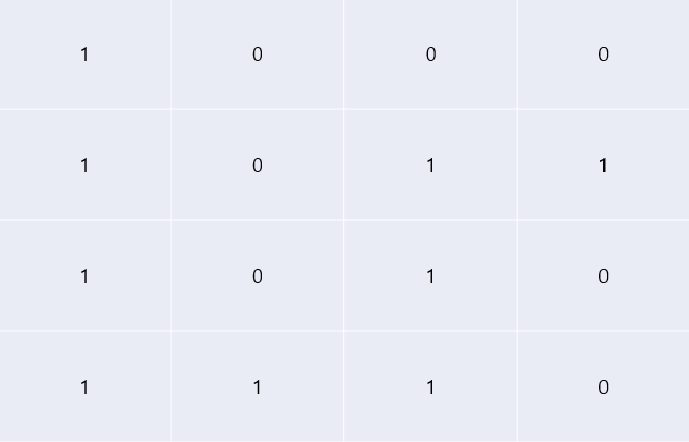 - 보통 BFS 문제를 보면 아래와 같이 , 0과 1 혹은 , 0,*,$,# 등등 다양한 요소로 길을 진행하는데 방해하는 요소들(벽,불,물,돌 등)을 2차원맵에 표현하게 된다.