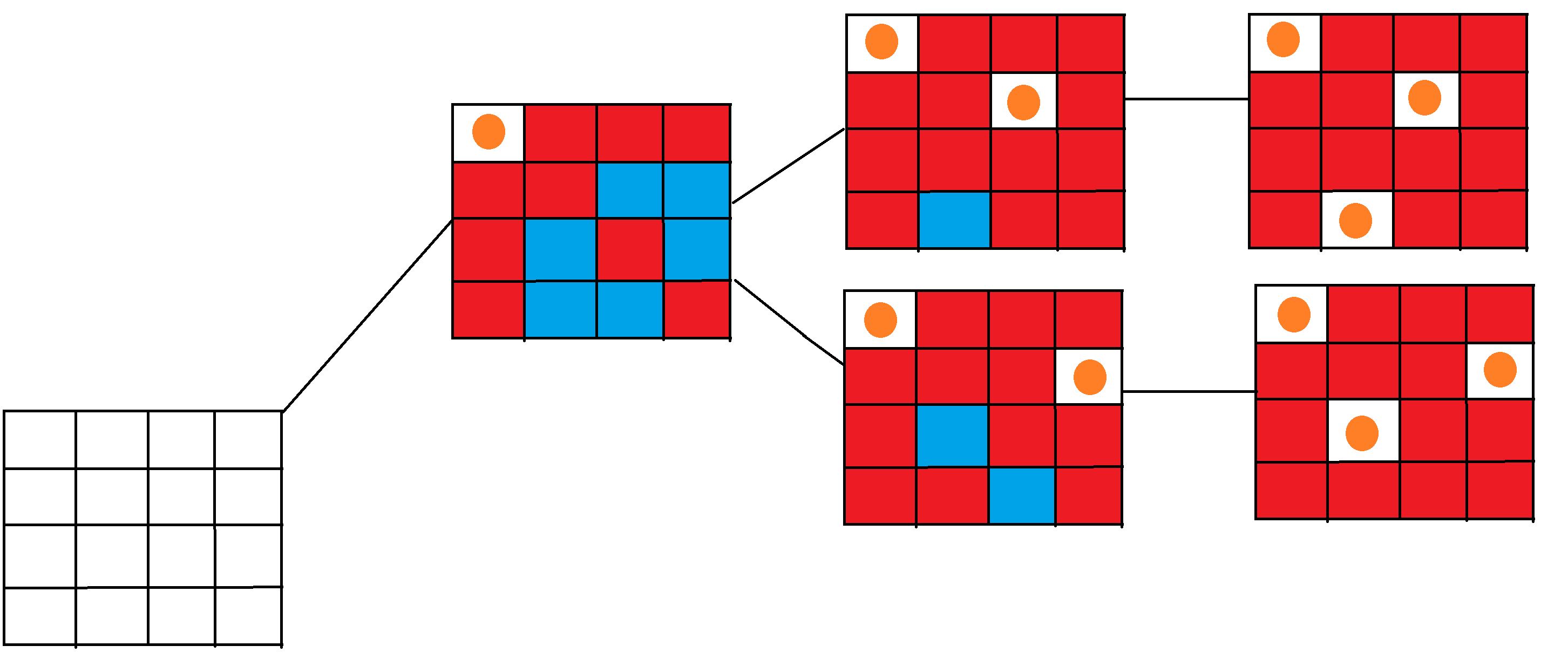 위와 같이, 퀸을 놓을 수 있는 자리를 생각하다보면, (0,0)으로 시작되는건 안된다는걸 단 4번만에 알 수 있게 된다. (와우)