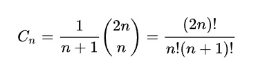 - 카탈란 수라고 따로 구하는 방법이 있다고 한다. (조합론에서 엄청 많이 나오는 수이고, 컴퓨터 쪽에서 많이 쓰인다고 합니다)
