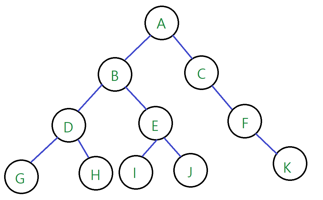 순서 : A ->B -> D-> G -> H ->E -> I -> J ->C->F->K