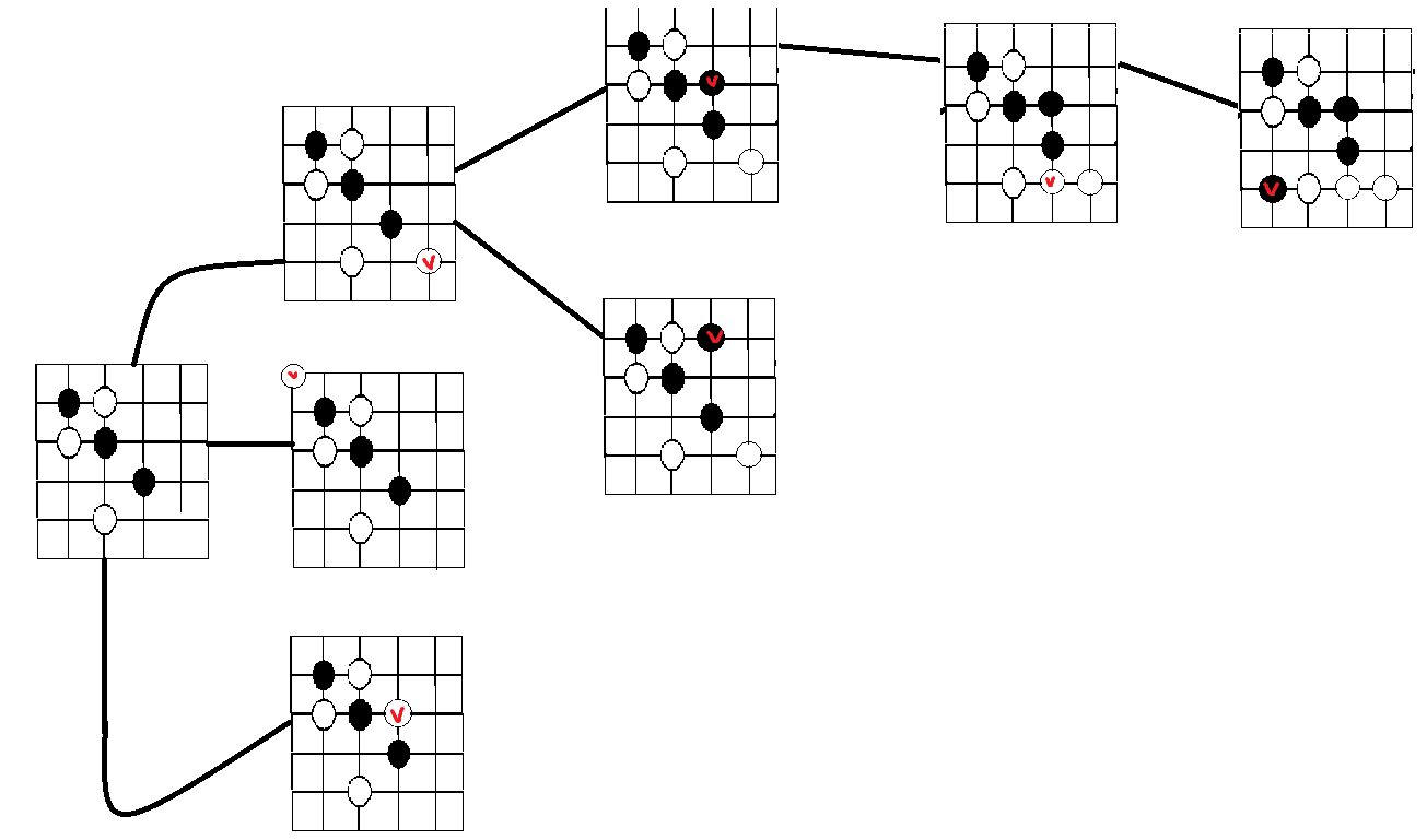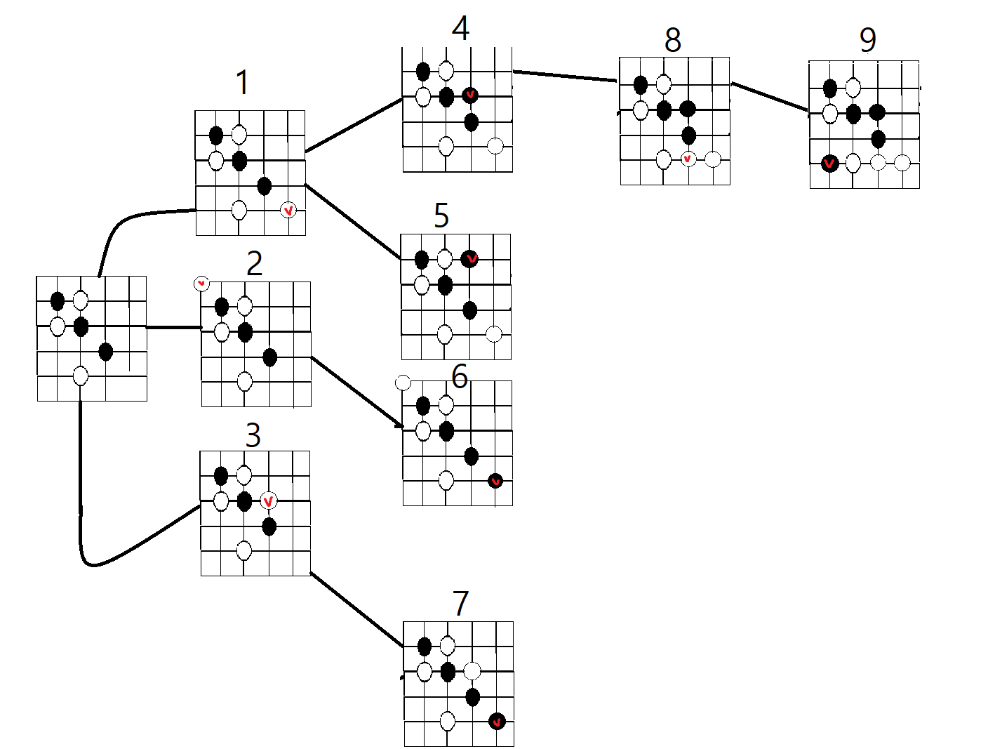 오목으로 생각하면, 내가 놓고, 상대방이 놓고, 그 뒤 상황을 생각하는 방법.
